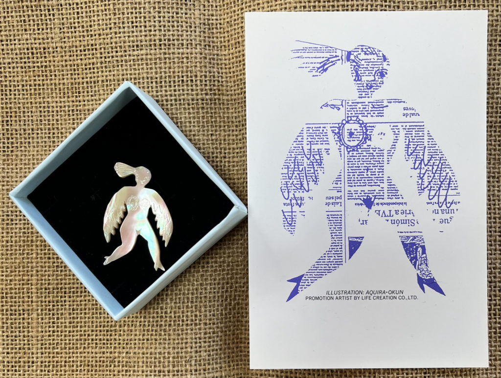 夜光貝、ポストカード(ピンバッジ製作:萩原真理子<Malie Kaiブランド>)