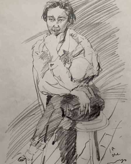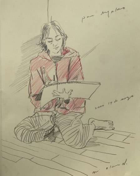 ドロー=引っぱる。とにかく一本でも多く線を引っぱる。線を描けば描くほど描く心地よさがわかる。影をぬらない。ただ、線だけ。