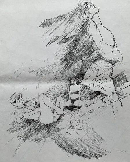 ドロー=引っぱる。とにかく一本でも多く線を引っぱる。線を描けば描くほど描く心地よさがわかる。影をぬらない。ただ、線だけ。