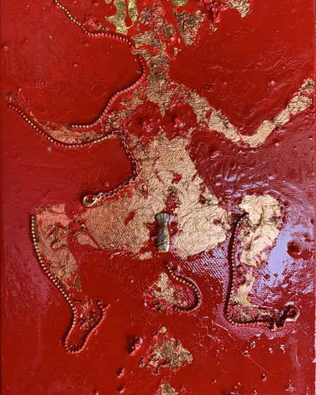 ■タブロー「AYUDA」 人工漆、金箔 …